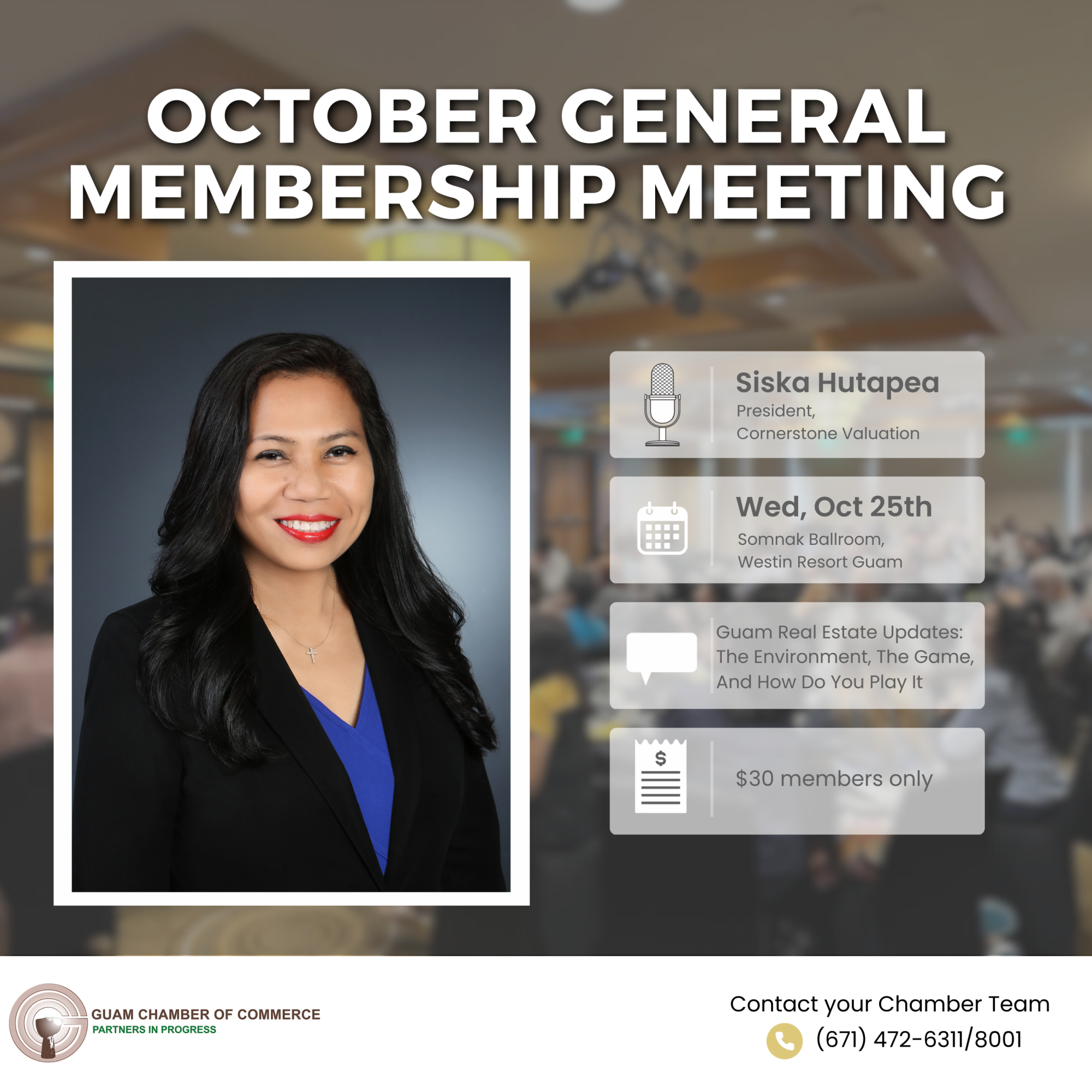 We encourage members to make advance payments for a swift entry on the day of the meeting. Contact your Chamber Team at (671) 472-6311/8001 to process payment.
